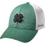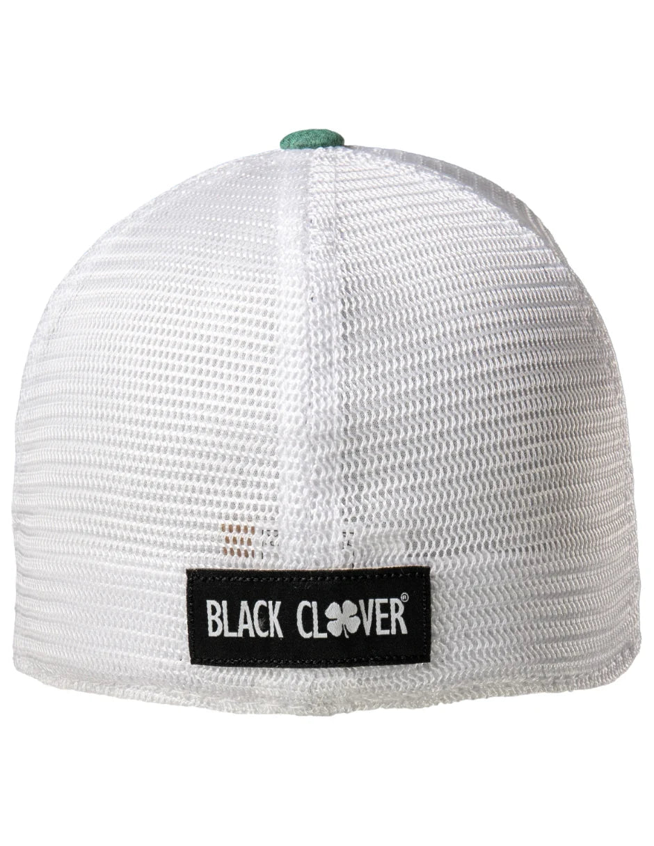 ⦿ Diseño: Trébol de cuatro hojas en color negro con borde blanco bordado sobre el panel frontal de un tono verde jaspeado. La frase "Live Lucky" está bordada discretamente en el lateral.