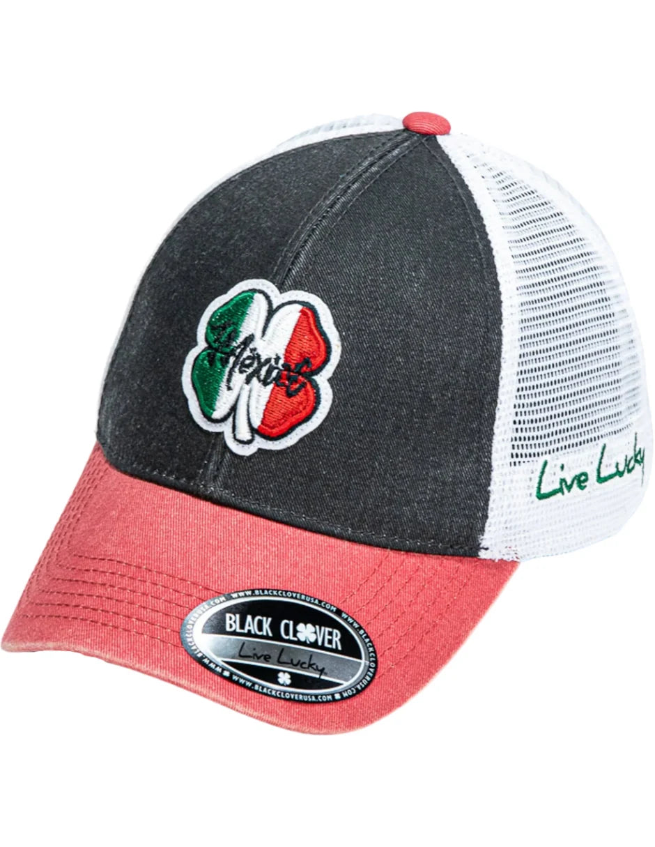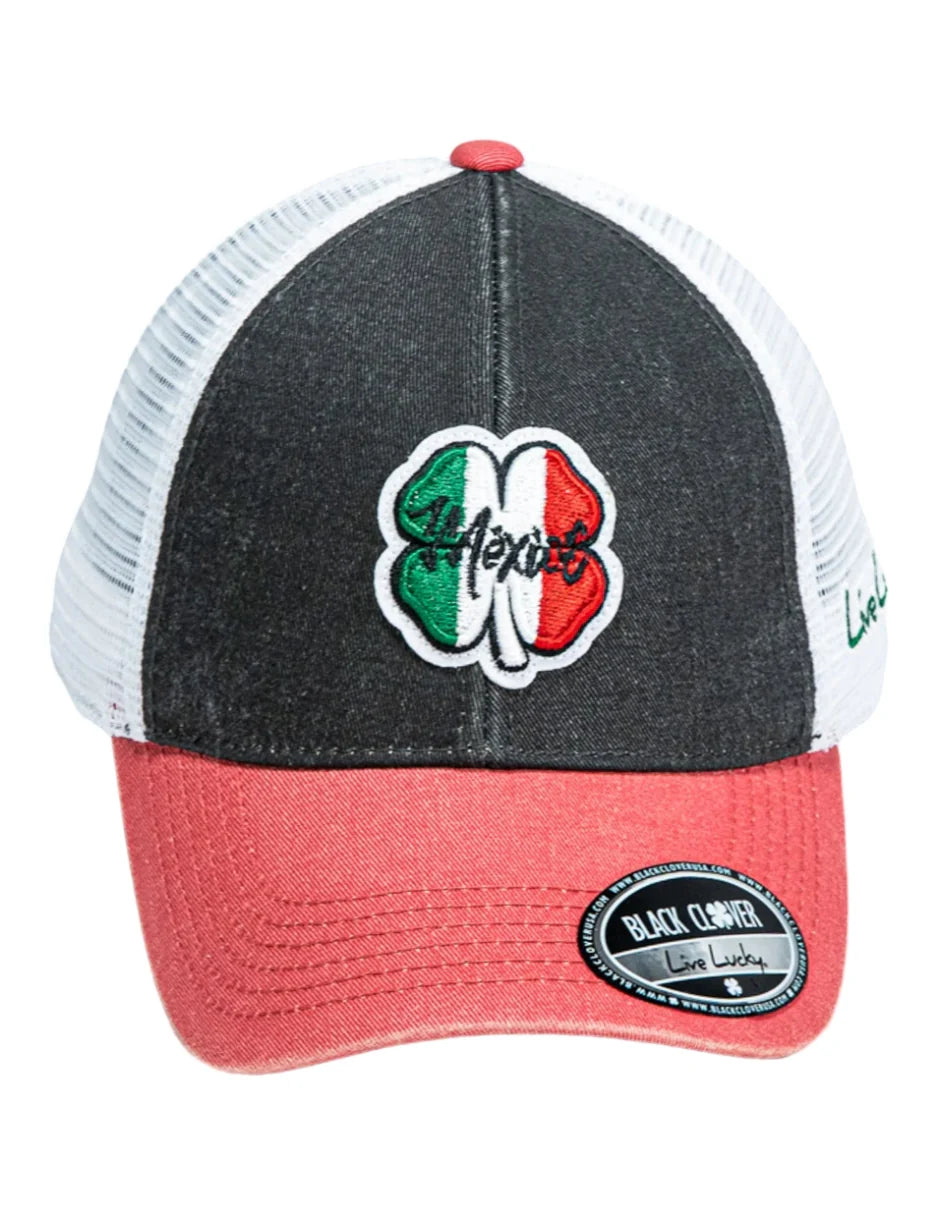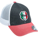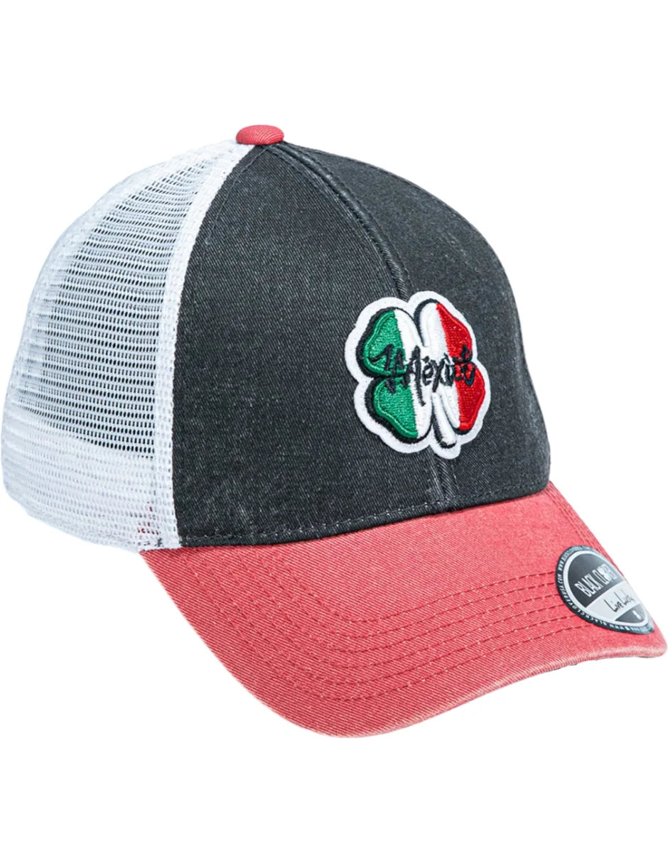 ⦿ Diseño: Parche bordado de un trébol de cuatro hojas con los colores de la bandera de México (verde, blanco y rojo). Debajo del trébol, la palabra "México" está bordada en color blanco.