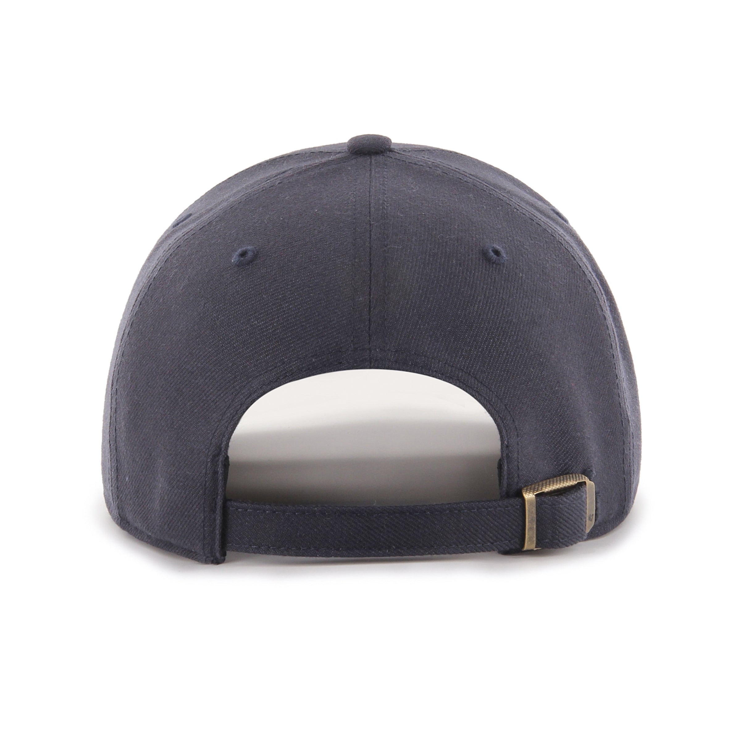 ⦿ Tipo de Gorra: Gorra azul marino con visera curva, cierre de tela ajustable en la parte trasera y el logo de '47 bordado en blanco en el lateral.