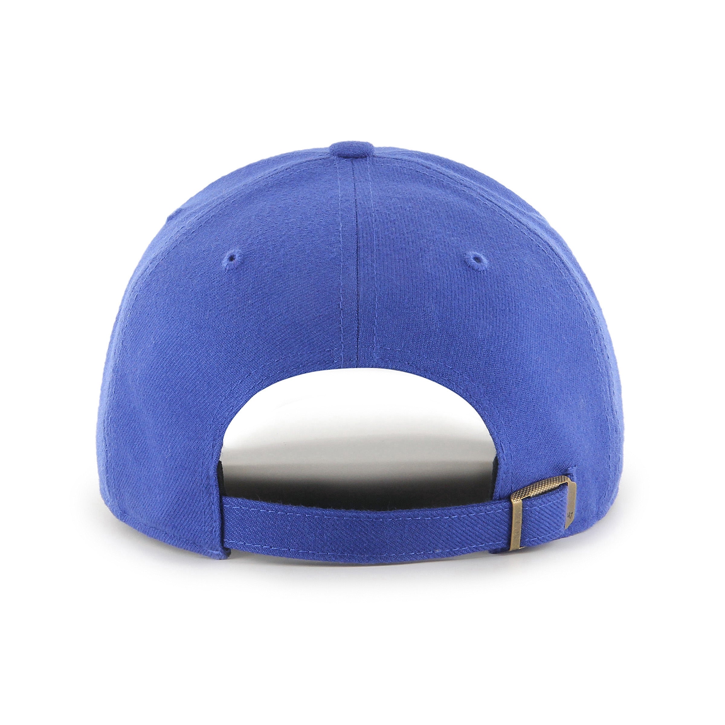 ⦿ Tipo: Gorra azul rey de visera curva con ajuste trasero de tela y logo '47 bordado en blanco a un lado.