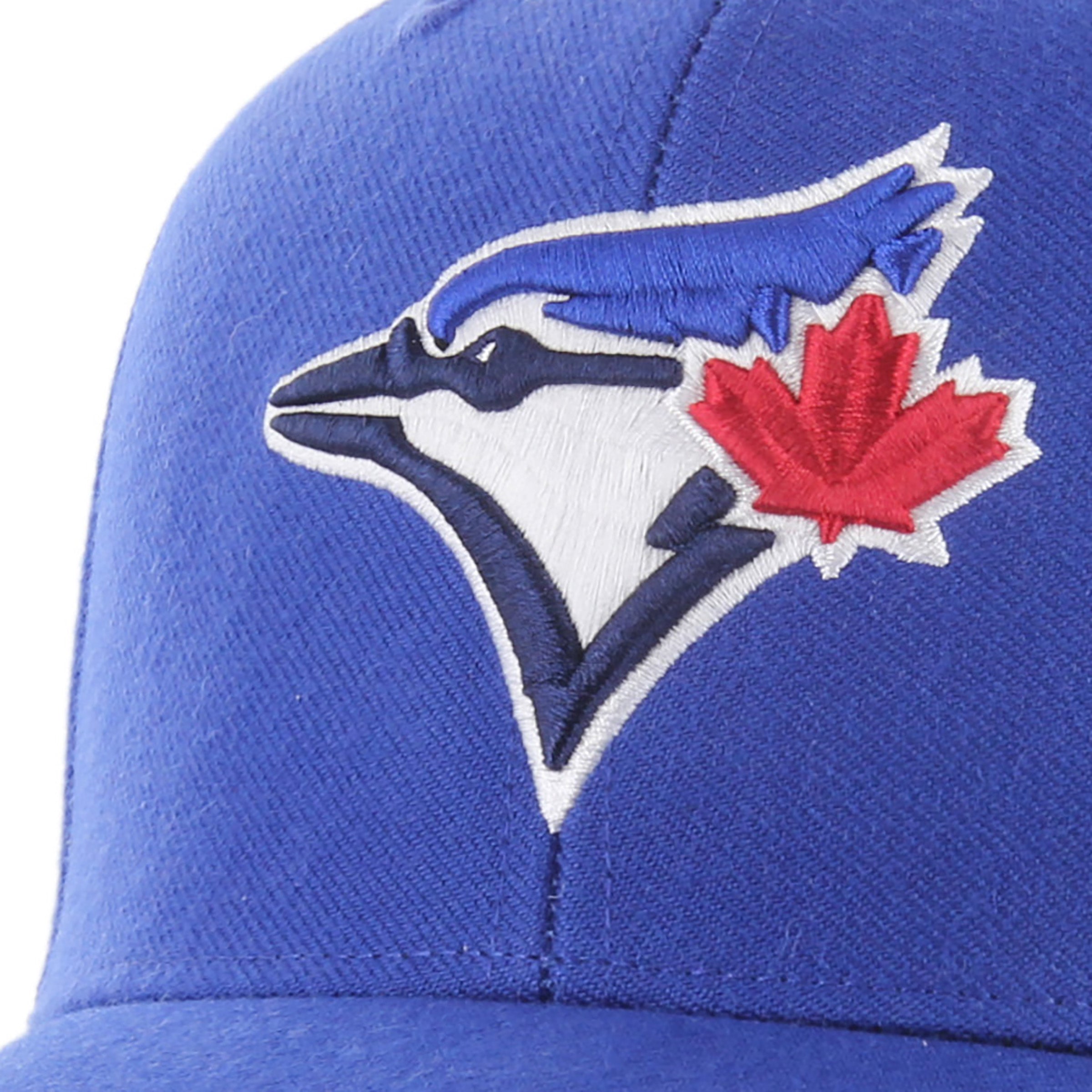 ⦿ Diseño: Logo de "Blue Jays" con la cabeza de un azulejo en azul y blanco, y una hoja de arce roja, bordado al frente.