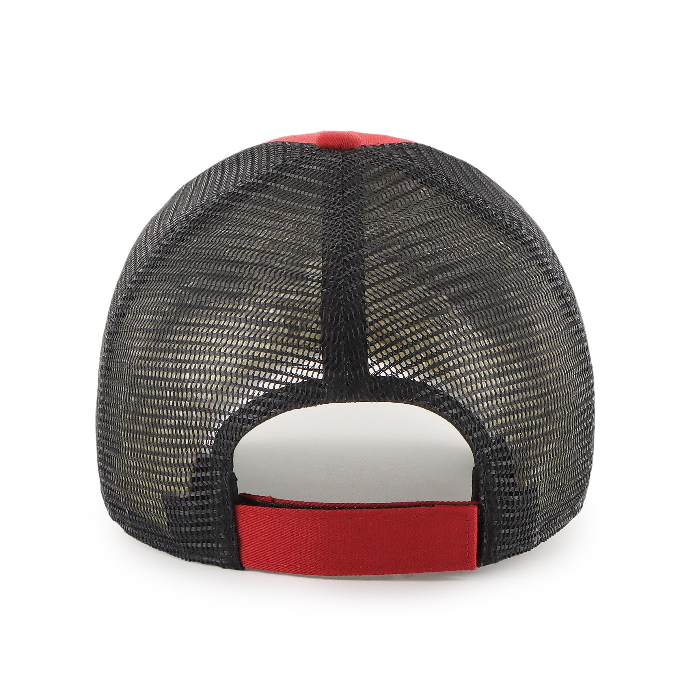 ⦿ Tipo de Gorra: Trucker con visera curva en color rojo y malla negra en la parte trasera.