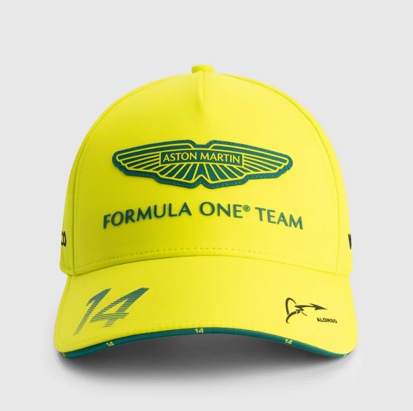 Apoya a Fernando Alonso con la gorra oficial del equipo Aston Martin F1. Su diseño en un color lima vibrante asegura que no pasarás desapercibido mientras muestras tu lealtad al piloto español.