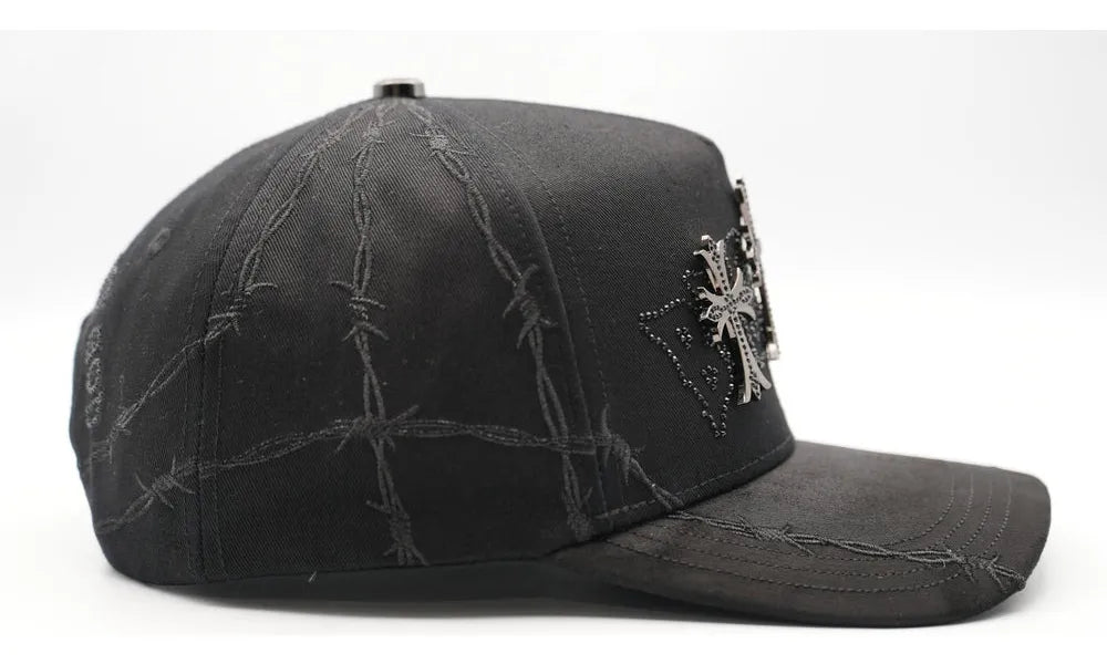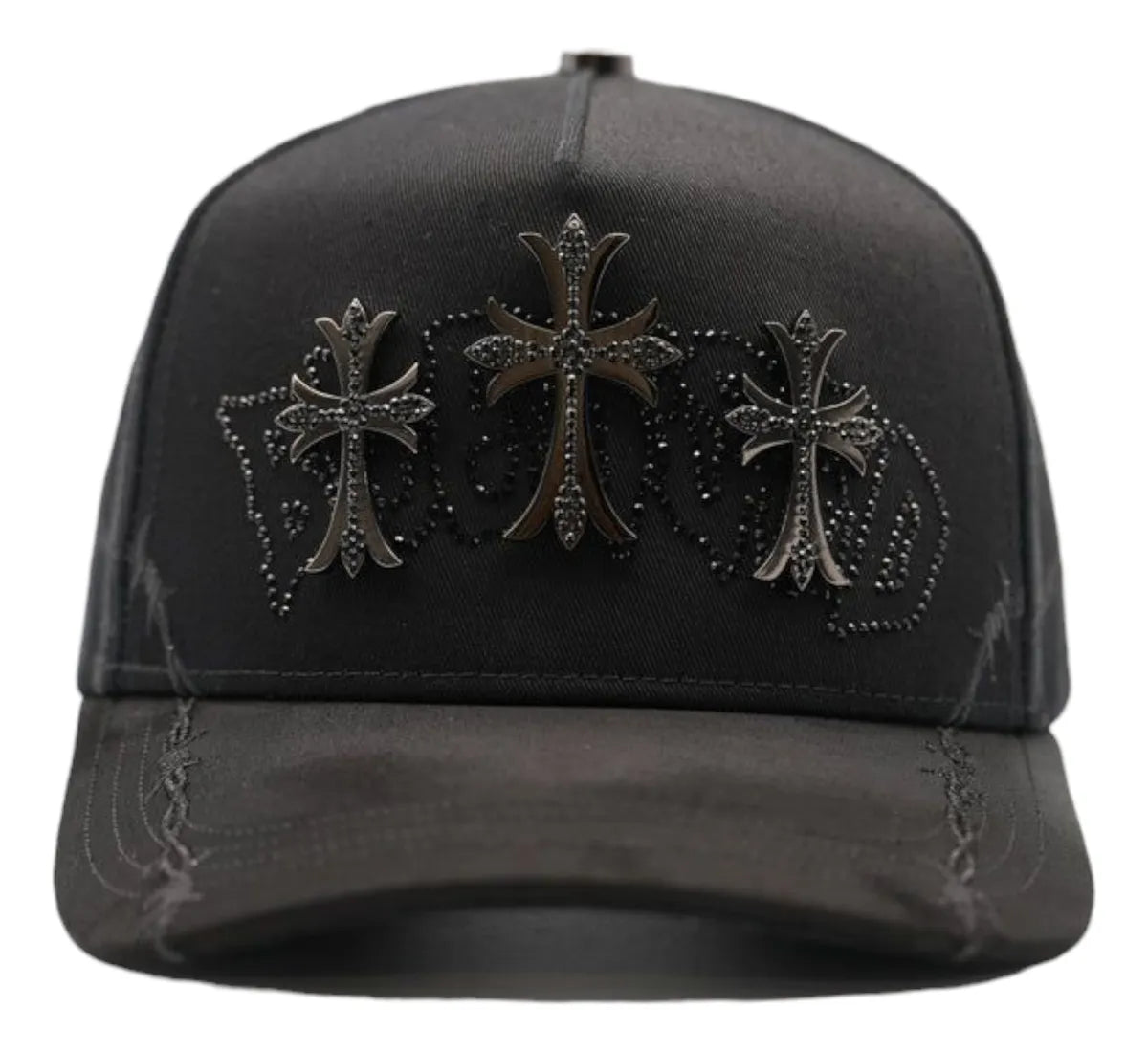 Adopta un estilo audaz y sofisticado con esta gorra "All Black". Su diseño monocromático y sus lujosos detalles góticos la convierten en una pieza central para un look urbano y premium.