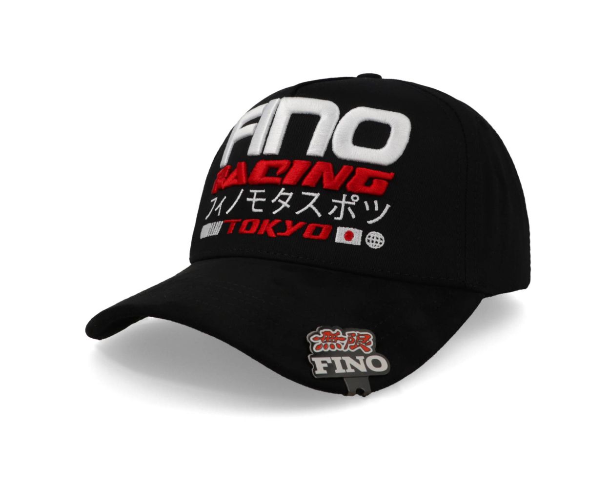 ⦿ Detalles: Frase "FINO RACING" en blanco y rojo, con texto japonés y bandera de Japón. Adicionalmente, cuenta con un pin de metal en la visera con la palabra "FINO".