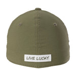 ⦿ Diseño: Trébol de cuatro hojas bordado en color blanco con efecto 3D sobre la gorra de color verde militar.