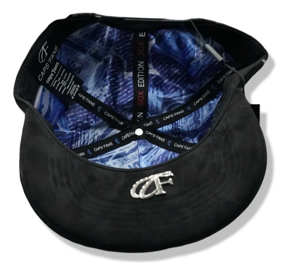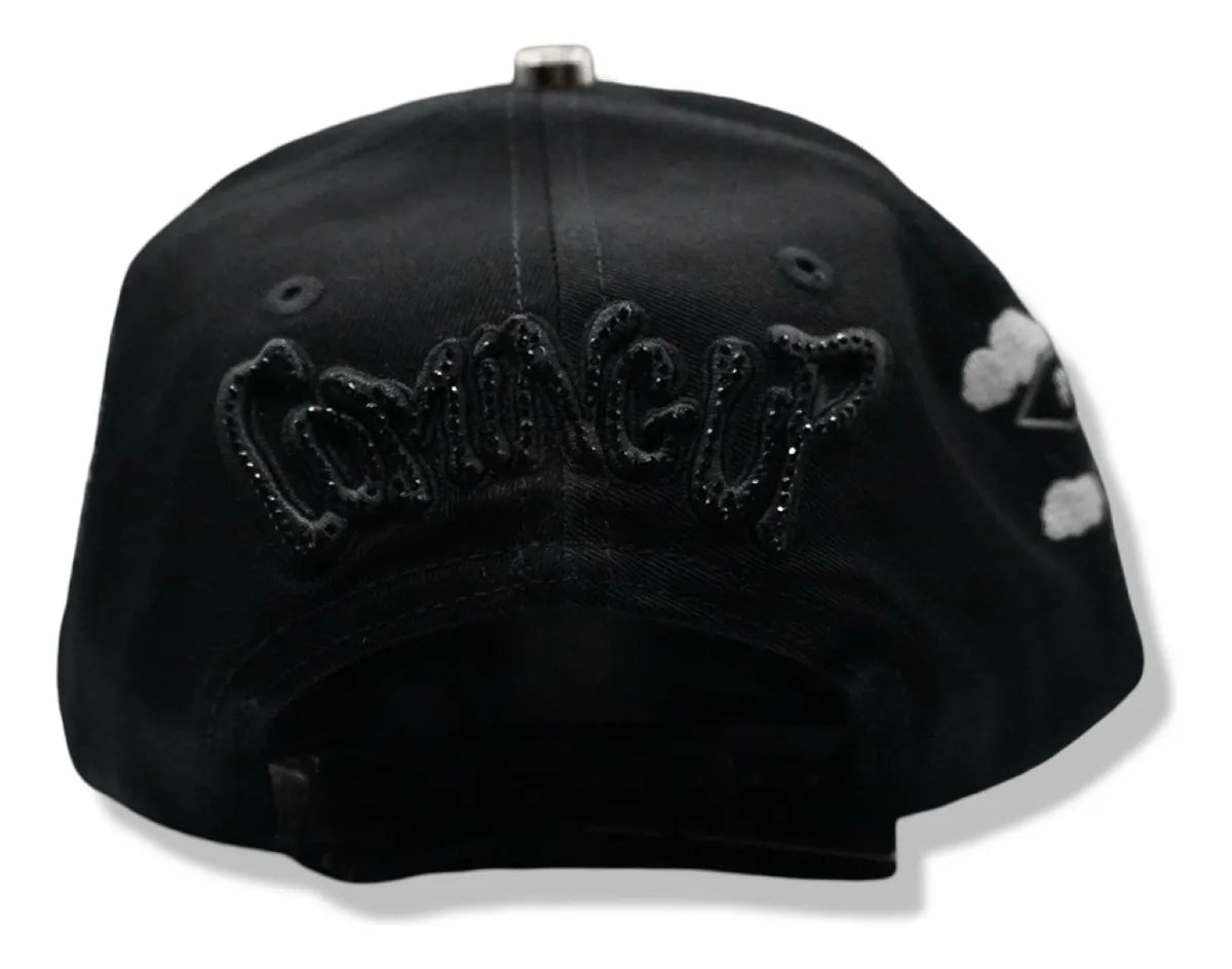 ⦿ Detalles: Diseño "all black". Presenta el icónico logotipo "Chicago" en tipografía cursiva, creado con pedrería negra brillante, y el logo "SOX" gótico superpuesto en relieve.
