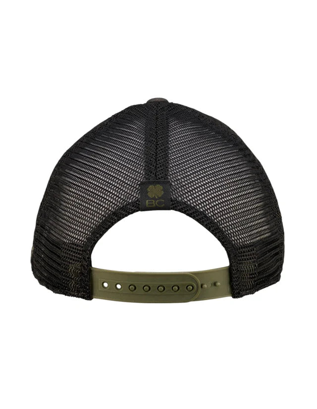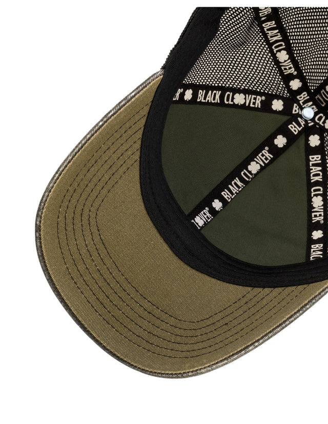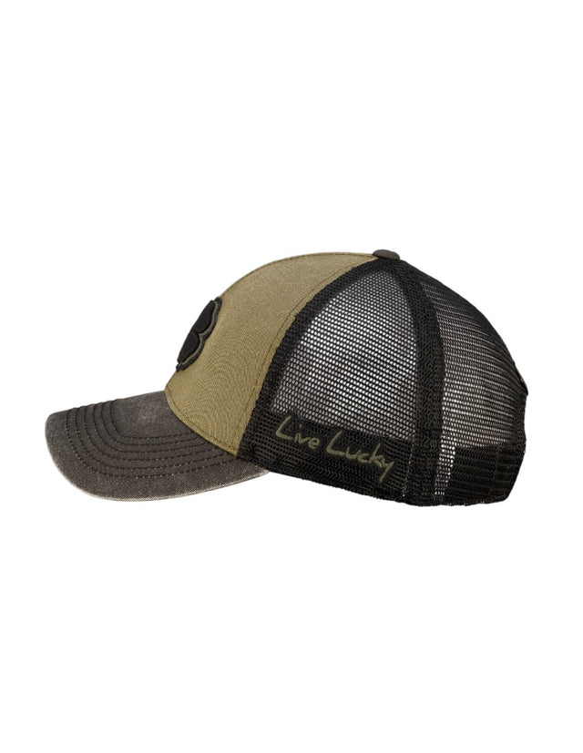 ⦿ Detalles: Diseño de dos tonos con panel frontal en verde olivo y visera en negro deslavado. Parche de trébol de cuatro hojas en color negro al frente.