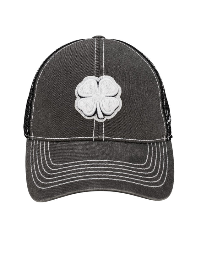 ⦿ Detalles: Diseño en color gris/negro deslavado con costuras a contraste en hilo blanco. Destaca un parche frontal del trébol de cuatro hojas bordado en color blanco.