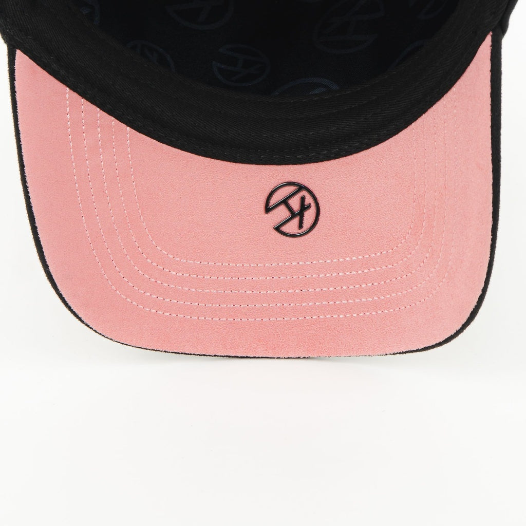 ⦿ Visera: Curva con acabado tipo gamuza, y la parte inferior en color rosa.